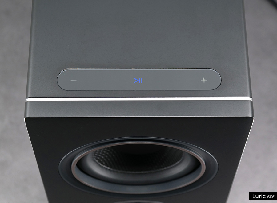 이렇게 스피커가 스스로 음악을 재생할 수 있으니, 메인 스피커의 상단에는 터치 버튼이 세 개 있습니다. 스마트폰에 손대지 않고 스피커의 터치 버튼으로 음악 재생과 일시 정지, 볼륨 조정 등이 가능합니다. 혹시 문제가 생겼다면 터치 버튼으로 팩토리 리셋도 할 수 있으니 참조 바랍니다. 사실... 리셋할 일은 좀처럼 없으며 저도 한 번도 해본 적이 없으나 일단은 방법을 기록해둡니다.