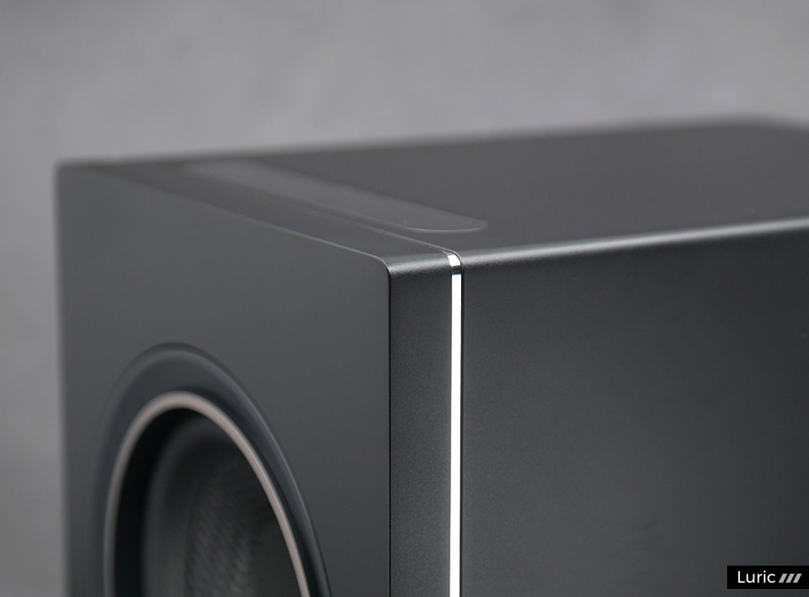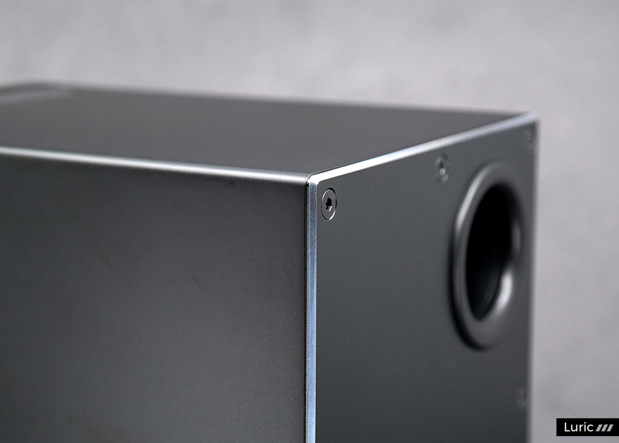 스피커 본체의 크기는 가로 145, 세로 246, 깊이 192mm이며 좌우 스피커를 합친 무게는 7.36kg이라고 합니다. 상당히 작은 크기이며 좌우 스피커 사이의 케이블이 없으므로 자유롭게 배치할 수 있습니다. 단, 무선 스피커라서 좌우 각각 하나씩 전원 케이블을 연결해야 하므로 아웃렛이나 멀티탭의 자리를 미리 확보해둡시다. 알파 iQ의 인클로저는 MDF 소재이며 배플(Baffle) 부분은 알루미늄으로 만들었습니다. 스피커 후면의 패널 부분도 통 알루미늄인데 테두리가 샤프하게 가공되어 있으므로 손으로 다룰 때 주의하시기 바랍니다.