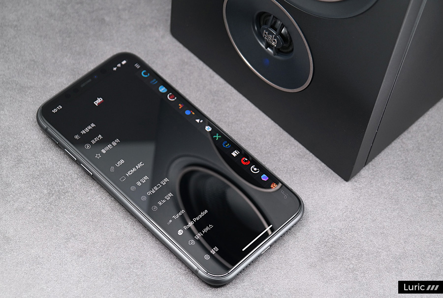 또 하나 살펴볼 점이 있는데요. 알파 iQ는 예비 개념으로 좌우 스피커를 유선 연결하는 '케이블 모드' 같은 것이 없습니다. 좌우 채널의 연결이 오로지 무선인 것입니다. 그리고 스마트폰이나 PC에서 BluOS 컨트롤러 앱으로 이 스피커의 모든 기능을 다루게 됩니다. 입력 전환도 BluOS 컨트롤러 앱을 사용하며, 스포티파이 커넥트와 타이달 커넥트를 지원합니다. 또한, 애플 기기를 쓰는 분들은 에어플레이를 통해서 간단히 무선 재생을 할 수 있습니다.
