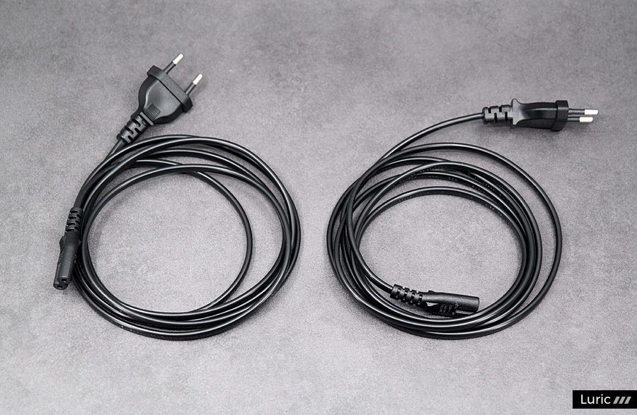 알파 iQ는 크기로 볼 때 미니 북쉘프 스피커라서 포장 박스가 작은 편입니다. 그러나 손으로 들고 이동하기에는 너무 크고 무거우니 혹시 매장에서 바로 구입하겠다면 차를 몰고 나가시기 바랍니다. 박스를 열면 두꺼운 스티로폼 완충재가 보이며, 안쪽에는 스피커 본체 한 쌍과 다수의 케이블이 담겨 있습니다. 미국 규격과 유럽 규격의 플러그가 달린 전원 케이블이 한 쌍씩 총 네 개가 들어 있고, 아날로그 입력에 사용하는 3.5mm 스테레오 케이블과 유선 네트워크를 위한 랜 케이블이 포함됩니다. 즉, HDMI, 옵티컬 케이블 등은 별도로 준비해야 합니다.