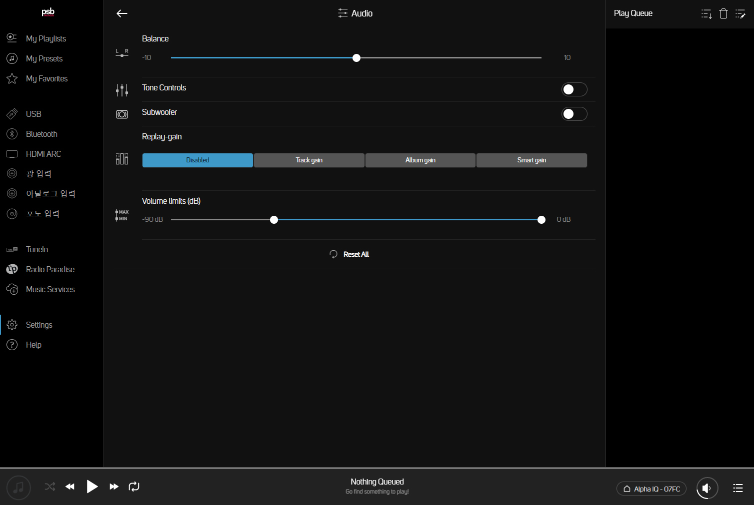 *PSB 알파 iQ 메인 스피커의 팩토리 리셋 방법