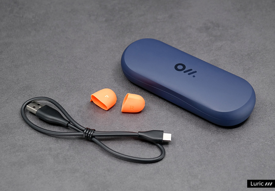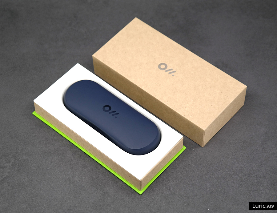패키지 디자인은 염료와 코팅이 없는 재생지 소재의 박스와 연녹색의 하단 박스가 조합되어서 무척 깔끔한 인상을 줍니다. 박스를 열면 가로 방향으로 길쭉한 캐링 케이스가 나오고요. 박스 안쪽에는 충전용 USB 케이블과 마치 골무(Thimble)처럼 생긴 실리콘 부품 한 쌍도 있습니다.